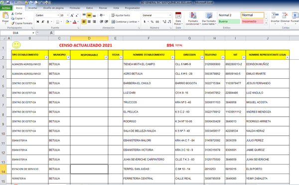 En la hoja 2 esta lo mismo pero con 894 registros o datos,, y se llama censo B
