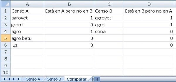 ¿CÓMO HAGO PARA comparar y que me muestre cuales faltan A O B y vicerverza y cuales están repetidas?