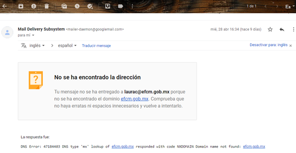 Necesito contactarme con una trabajadora, pero no se envía mi mensaje y dice que no aparece la dirección pero ¿por qué?, si yo escribí bien el correo electrónico