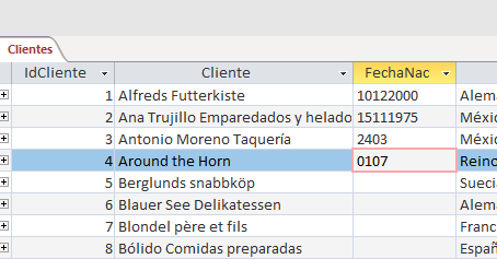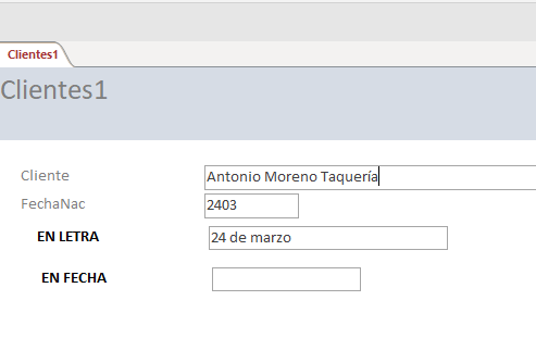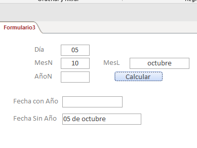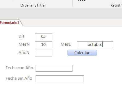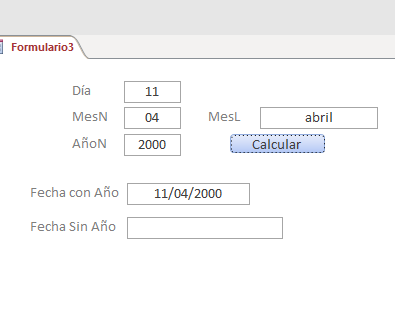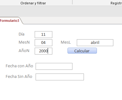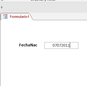 Tengo una tabla con un campo Fecha/Hora formato Fecha Corta. En un formulario tengo un control con origen en dicho campo. Utilizo una mascara de entrada 00/00/0000;;_ y como formato para visualizar dd" de "mmmm" de "aaaa