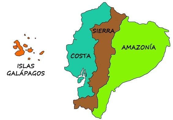 Dibuja un mapa del Ecuador, en el ubicar 2 características de cada región