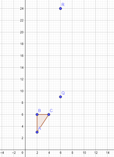 Alguien me podría ayudar con este ejercicio de triángulos semejantes, El triangulo ABC con vértices A(2,6), B(2,6), C(4,6) es semejante al triangulo QRS con vértices Q(6,9), R(6,24) y S. Hallar las posibilidades para las coordenadas de S.
