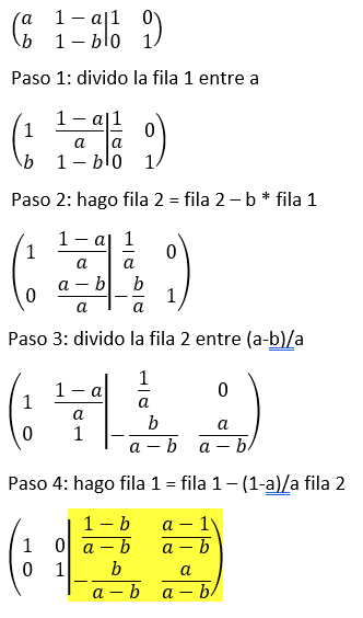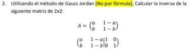 Método Gauss-Jordan (no por fórmula) calcular la inversa