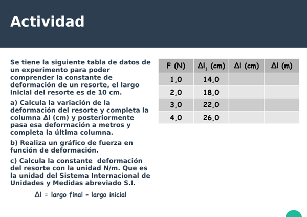 Se tiene la siguiente tabla de datos deun experimento para podercomprender la constante dedeformación de un resorte