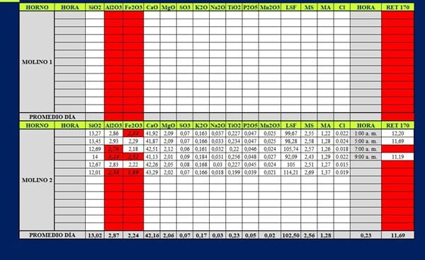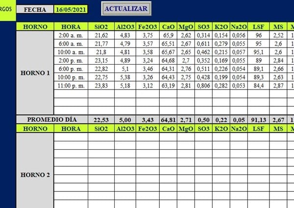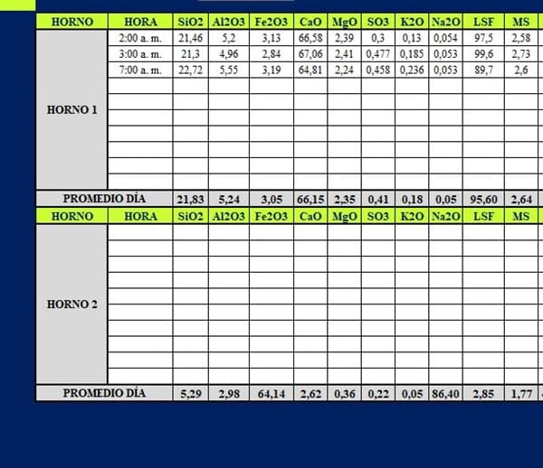 Tengo el inconveniente en clinker que se pegan los datos de ambos hornos en las casillas del horno 1.