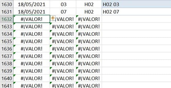 Sub CLINKER() Dim sh1 As Worksheet, sh2 As Worksheet Dim wb As Workbook Dim i As Long, fila As Long Dim col As String, m As Variant, horno As Integer ' Set sh1 = Sheets("CLÍNKER") sh1.Range("C5:AE14, C17:AE26").ClearContents Application.ScreenUpdating = False Application.DisplayAlerts = False Application.StatusBar = False ' Set wb = Workbooks.Open("\\10.7.10.1\calidad\SEGUIMIENTO HORA-HORA\CLINKERIZACION.xlsx", ReadOnly:=True) Set sh2 = Sheets("CLINKER") For i = 2 To sh2.Range("A" & Rows.Count).End(3).Row If sh2.Range("A" & i).Value = sh1.Range("C2").Value Then If Not IsError(sh2.Range("A" & i)) Then Select Case sh2.Range("C" & i).Value Case "H01": col = "C": horno = 1 Case "H02": col = "C": horno = 2 Case Else: col = "" End Select If (col <> "") And (horno = 1) Then fila = 5 Do While sh1.Cells(fila, col).Value <> "" fila = fila + 1 Loop m = sh2.Cells(i, "B").Value * 1 sh1.Cells(fila, col) = IIf(m < 12 Or m = 24, m Mod 24 & ":00 AM", m Mod 12 & ":00 PM") sh1.Cells(fila, Columns(col).Column + 1).Resize(1, 27).Value = sh2.Range("g" & i).Resize(1, 27).Value End If If (col <> "") And (horno = 2) Then fila = 17 Do While sh1.Cells(fila, col).Value <> "" fila = fila + 1 Loop m = sh2.Cells(i, "B").Value * 1 sh1.Cells(fila, col) = IIf(m < 12 Or m = 24, m Mod 24 & ":00 AM", m Mod 12 & ":00 PM") sh1.Cells(fila, Columns(col).Column + 1).Resize(1, 27).Value = sh2.Range("g" & i).Resize(1, 27).Value End If End If End If Next ' wb.Close False Application.ScreenUpdating = True If sh1.Range("C5, L5, U5") = "" Then MsgBox "No hay datos reportados para este día" End If End Sub