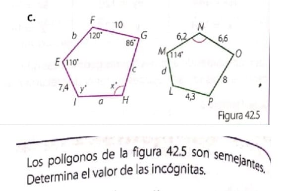 Los polígonos semejantes tienen todos sus ángulos iguales de uno a uno y por la apariencia de las figuras parece que las parejas de ángulos correspondientes deberían ser:
