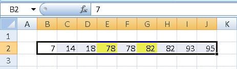 Ej: 7 14 18 78 78 82 82 93 95