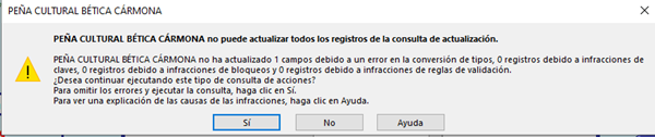 Tengo dos tablas "T_Contabilidad" y "T_ LibroContable" ambas tablas están relacionadas entre si por el campo Expediente del tipo alfanumérico . La relación es del tipo 1 a 1 con activación de integridad referencial, actualizar en cascada y eliminar en cascada. Los Registros se introducen mediante un formulario "F_AnotacionContable" dependiente de la tabla "T_Contabilidad". En el formulario tengo un botón con una Instrucción SQL para insertar el registro en la tabla "T_LibrroContable".- Hasta ahí todo funciona bien,.- El problema se me plantea cuando surge la necesidad de modificar algún registro. La modificación se realiza en el formulario y queda grabada en la tabla origen del formulario, pero no en la otra.