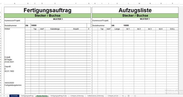 Me faltó actualizar la hoja "Stecker Buchse" porque no entendí qué vas a hacer, pero empieza a probar la parte que agrega registros a la hoja "Zuschnitte".