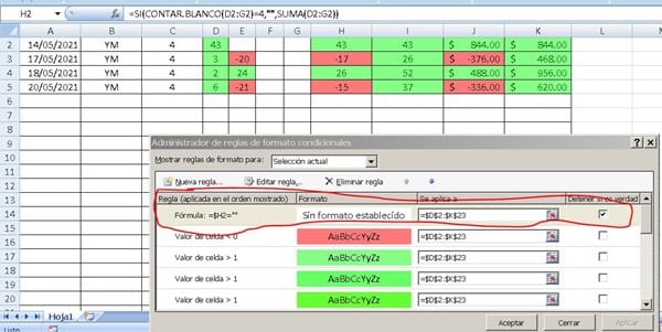 Fórmula color en celdas y columnas
