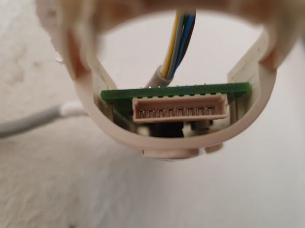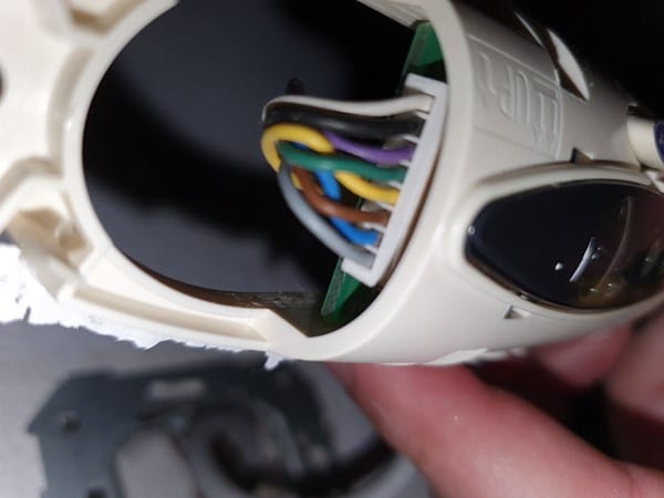 Al desmontarlo, me encuentro que el cable con 8 hilos está conectado, no cable por cable, sino con un conector conjunto.