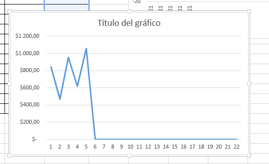 Estoy tratando de asignar el rango de datos al gráfico de esta hoja Excel. Quiero que se rellene con los valores de la columna A. El problema es que en dicha columna ingreso la fecha de los dias. Hay dias del mes que no se rellenan. Pero al definir el rango de datos en el eje, Excel coloca todos los dias del mes.