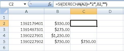 Había aplicado la función extraer, pero esta solo funciona con texto y cuando intento usar la función si para que me determine si es un 1 0 2 todo me marca que es falso.