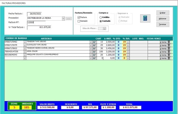 El proceso de Ingreso de facturas de Compra se hace hasta aquí muy bien.