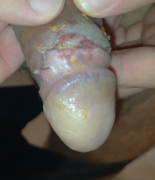 Y ahora tengo miedo que por las erecciones o cualquier cosa me salten los otros puntos y se me abran como me paso en la foto de arriba. ¿Si se me saltaran más que pasaría? Porque al final no entiendo el porque no se cicatriza, si me curo dos veces al día con betadine.
