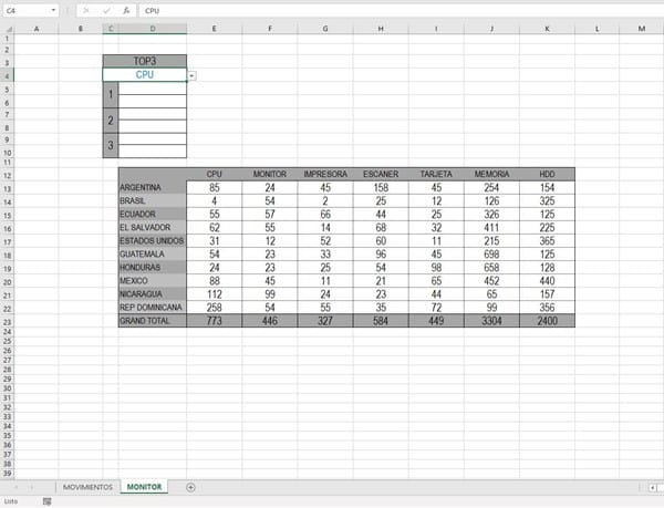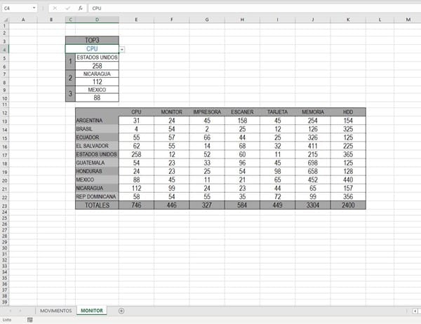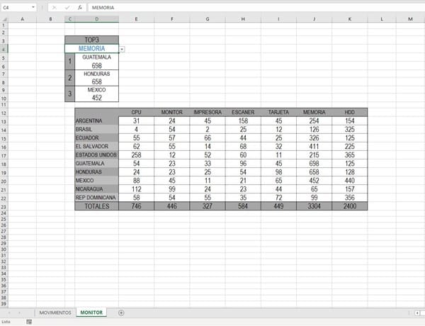 La misma consulta seria para traer el 2do valor más alto a la celda B11 y el país al que pertenece a la celda B12