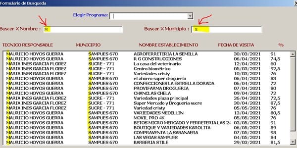 Y que inicie la búsqueda por el nombre del técnico y también por el municipio