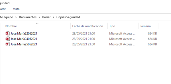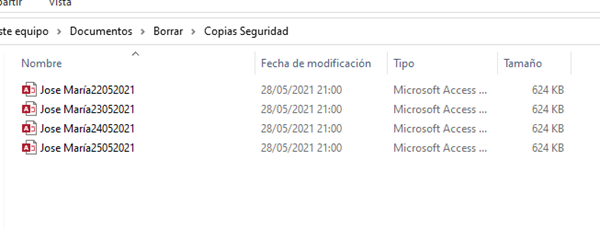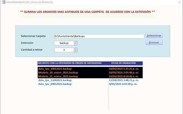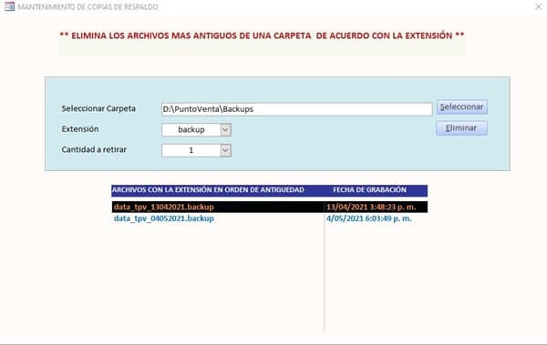 Selecciono la extensión backup (en este cuadro combinado hay una serie de extensiones como: mdb, accdb, xls, xlsx, doc, docx, txt, zip, rar, jpg, bmp), aunque están definidas como lista de valores se puede crear una tabla con éstas.