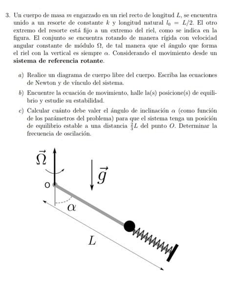 es un ejercicio de un parcial de fisica, quisiera saber como llegar a determinar la frecuencia de oscilacion a partir de la ecuacion de movimiento o con algun otro metodo y como encontrar el valor del angulo alfa.