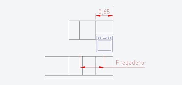 ¿Distancia mínima en cocina desde el horno al fregadero?
