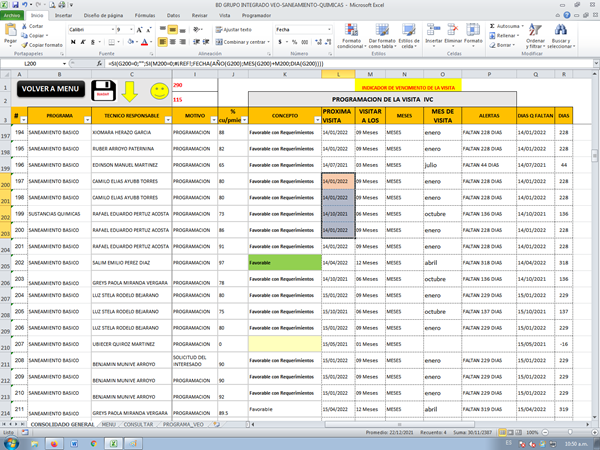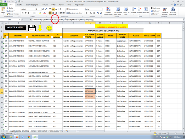 Aparentemente tengo la fórmula en una base de datos, pero la base de datos corre bien, pero la fórmula aparece dañada en las filas que están en 200 y más