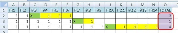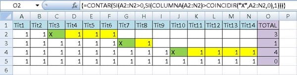 Cómo contar los valores de un rango de una fila a partir del valor de una celda