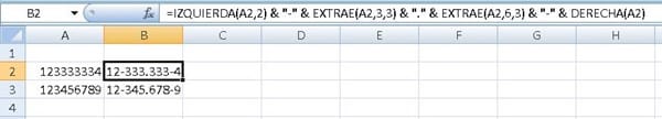 Quería consultar en excel como hago para cambiar este numero 123333334 a este numero 12.333.333-4