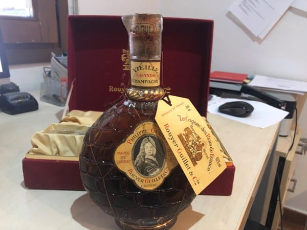 Quisiera saber el valor aproximado de una botella con su estuche de ROUYER GUILLET "LOUIS XIV que creo que tiene entre