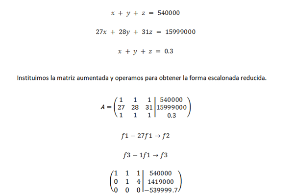 El estado colombiano compra 540000 toneladas de carbón a tres empresas multinacionales diferentes que lo venden a 27, 28 y 31 dólares la tonelada, respectivamente. La factura total asciende a 15999000 dólares. Si de la primera multinacional recibe el 30% del total del carbón comprado, ¿Cuál es la cantidad comprada a cada multinacional?
