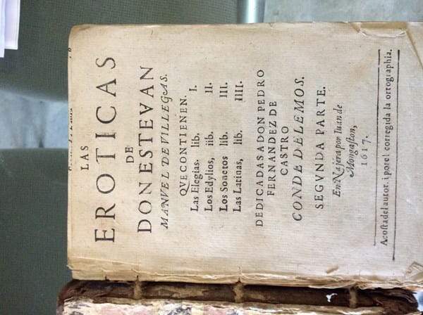 Tasación libro antiguo. Se trata de Las Eróticas de Villegas dedicadas al Conde de Lemos.