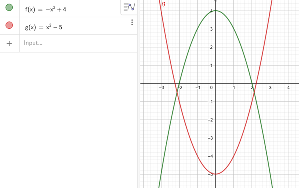 F(x)=-x^2 4 y g(x)=x^2-5 . ¿Cuál será el centroide de esta lámina plana?