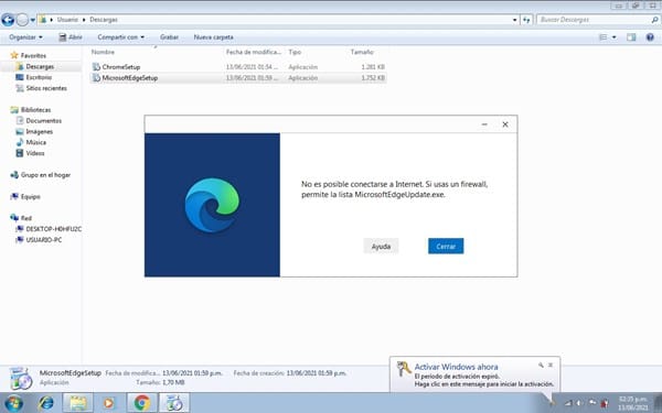 ¿Por qué no puedo instalar Microsoft edge en Windows 7?