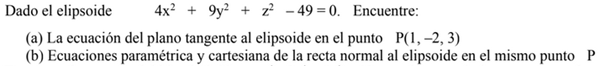 Dado el elipsoide 4x2+ 9y2+ z2– 49 = 0. Encuentre: