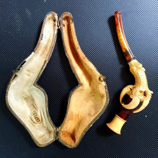 ¿Qué precio puede tener esta pipa de espuma de mar con su funda original?. Medidas 12 x 2,5 en la parte más ancha.