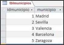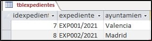 Ejemplo: Al dar de alta a Madrid, la tabla "Expedientes" quedaría así: