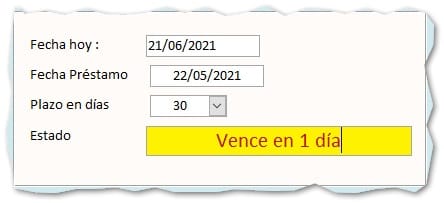La función requiere de 2 parámetros, fecha del préstamo y el plazo en días.