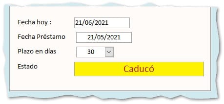 Me.ctlEstado = resultado(Me.fechaPrestamo, Me.cboPlazo)