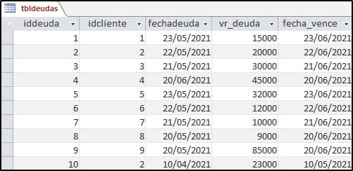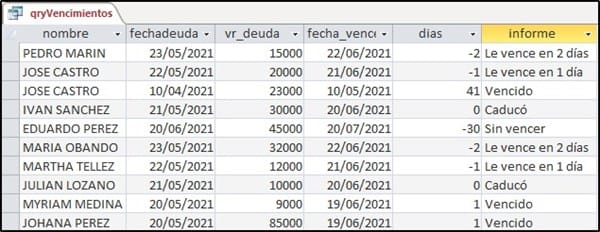 Observe que ya está tabla no tiene la columna fecha_vence, toda vez, que se obtiene de la consulta.