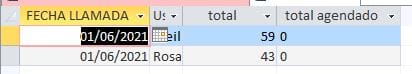 total agendado: DCont("[IDENTIFICACION]";"[Q_produccion_llamadas_general]";"[FECHA LLAMADA]= #" & [Forms]![frm_llamadas]![txt_Fecha] & "# and [ESTADO LLAMADA]='Agendado'")