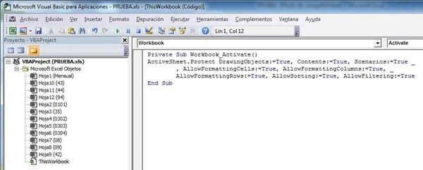 ¿Cómo proteger todas las hojas de un libro de excel con código vba?