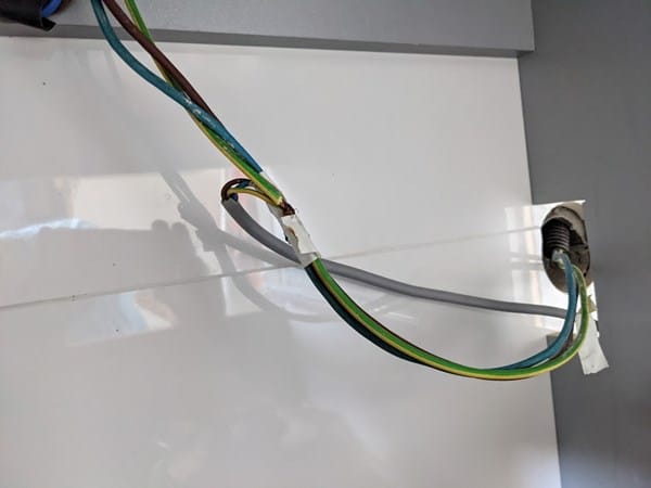 Cuando me instalaron el lavavajillas, el "profesional" secciono el cable y lo unió con el de la vitro para echufarlo todo junto al de la vitro. Como era de esperar se ha quemado el empalme.
