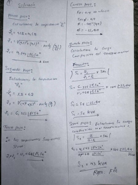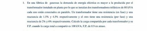 Calcule la carga compartida por cada transformador y su F.P. Cuando la carga total a compartir es 100KVA, F.P. De 0.9 en atraso