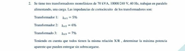 Teniendo en cuenta que todos tienen la misma relación X/R, determine la máxima potencia aparente que pueden entregar sin sobrecargarse