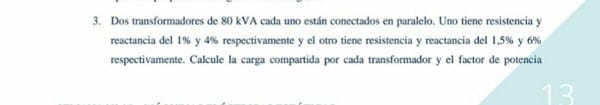 Calcule la carga compartida por cada transformador y el factor de potencia correspondiente cuando la carga total compartida sea