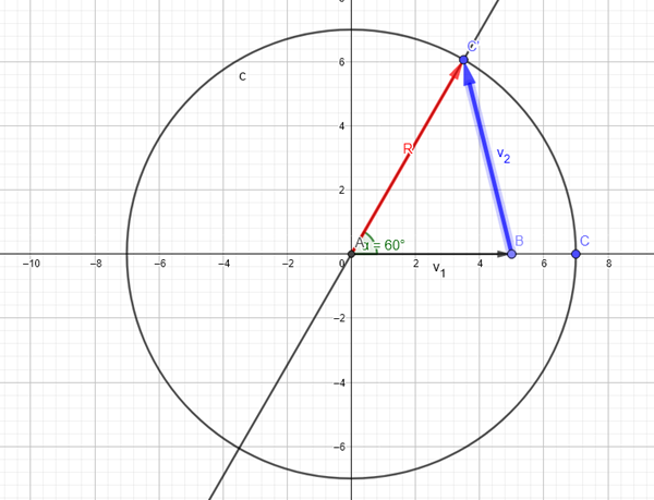 El módulo de la suma de dos vectores es de 7 unidades y forma con uno de los vectores de módulo igual a 5 unidades un ángulo de 60º. ¿Cuál es el módulo del otro vector?.