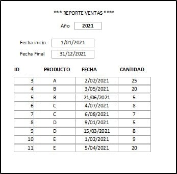 Como poner en informe fecha de inicio y fecha final de un año declarado en un cuadro de texto.
