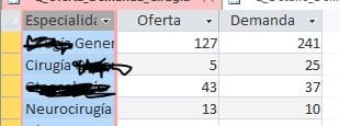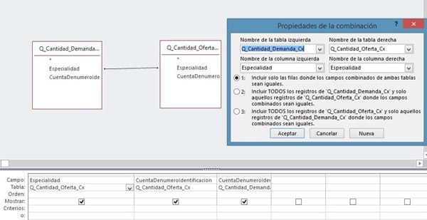 El problema que se me presenta es, que si en la consulta Q_cantidad_Demanda existe la especialidad de "DISEÑO" pero en la otra consulta(Q_cantidad_oferta) no existen registros de esta especialidad, el resultado de la consulta ya no me muestra nada de la especialidad "DISEÑO" .