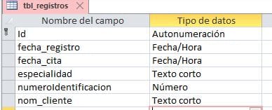 Los campos Especialidad son de tipo texto.