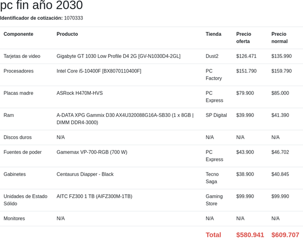 I. Hola Benjamín, en mi caso, tras tratar de verificar todos los componentes, en especial placa base, memoria y procesador, creo que todas las piezas son compatibles sin incompatibilidades. El único punto cuestionable -dentro de mi ignorancia-, que encuentro es que la tarjeta gráfica resulta muy inferior al procesador, siempre en el sentido de que el equipo vaya dirigido en gran medida a jugar.. como sabrás la GT 1030 es una tarjeta gráfica de gama bastante baja hoy día, si bien tiene un precio muy contenido, como tambien la RX 550 de AMD